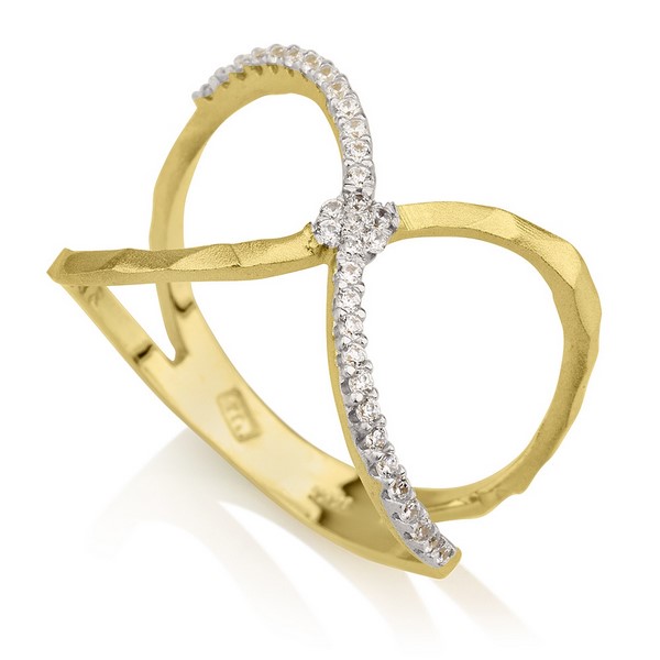 שם פריט: טבעת איקס אומנותית משובצת אבנים קטנות