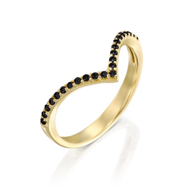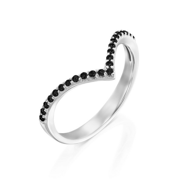שם פריט: טבעת וי בשיבוץ אבנים שחורות